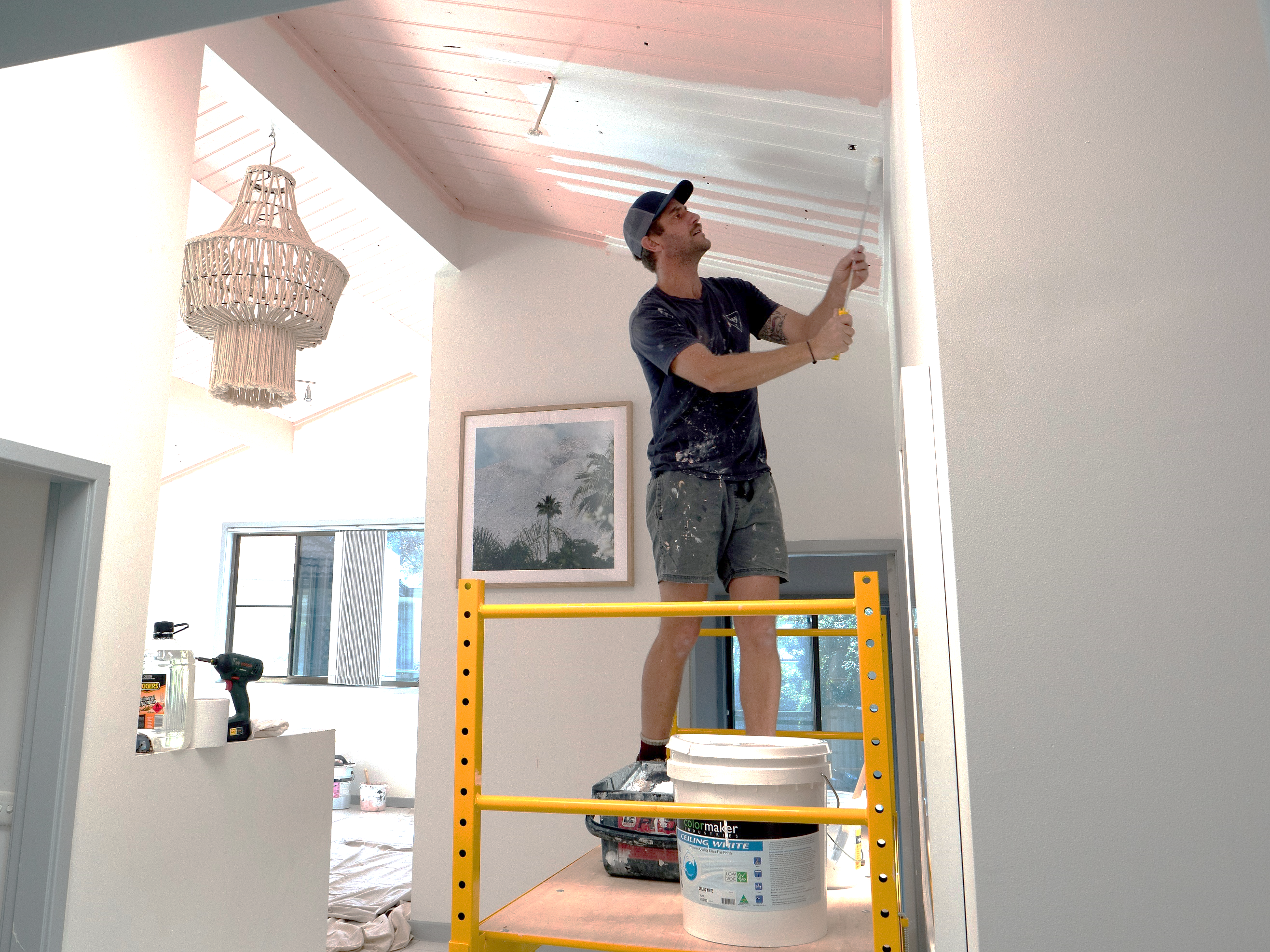 Designer Shannon Vos painting his ceilings with Colormaker bead-free CEILING WHITE